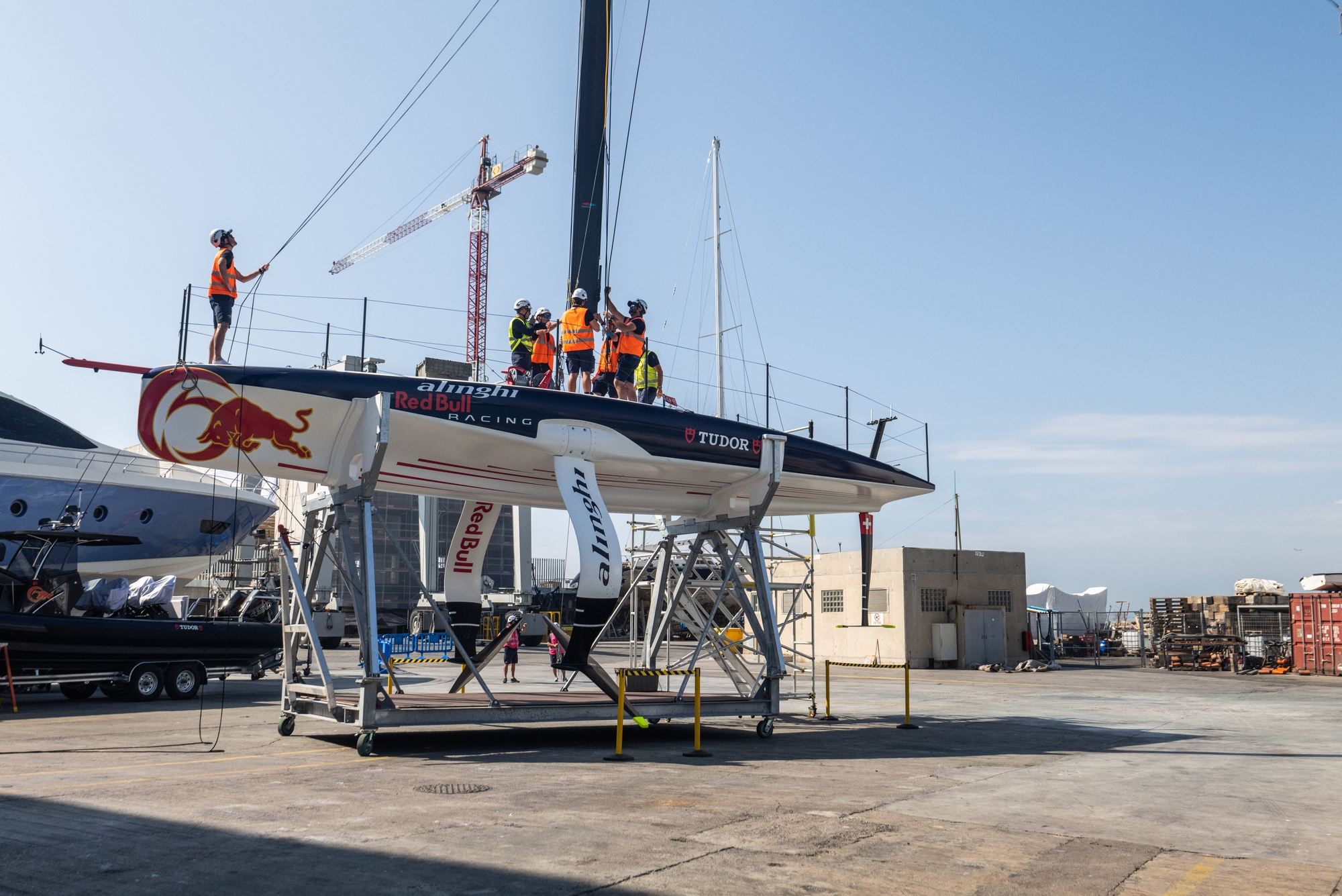 On-Water Recon Unit Notes: Alinghi Red Bull Racing rolled out their One Design AC40-7 at 10:20, waiting for the thermal wind later in the day. The yacht was craned in at