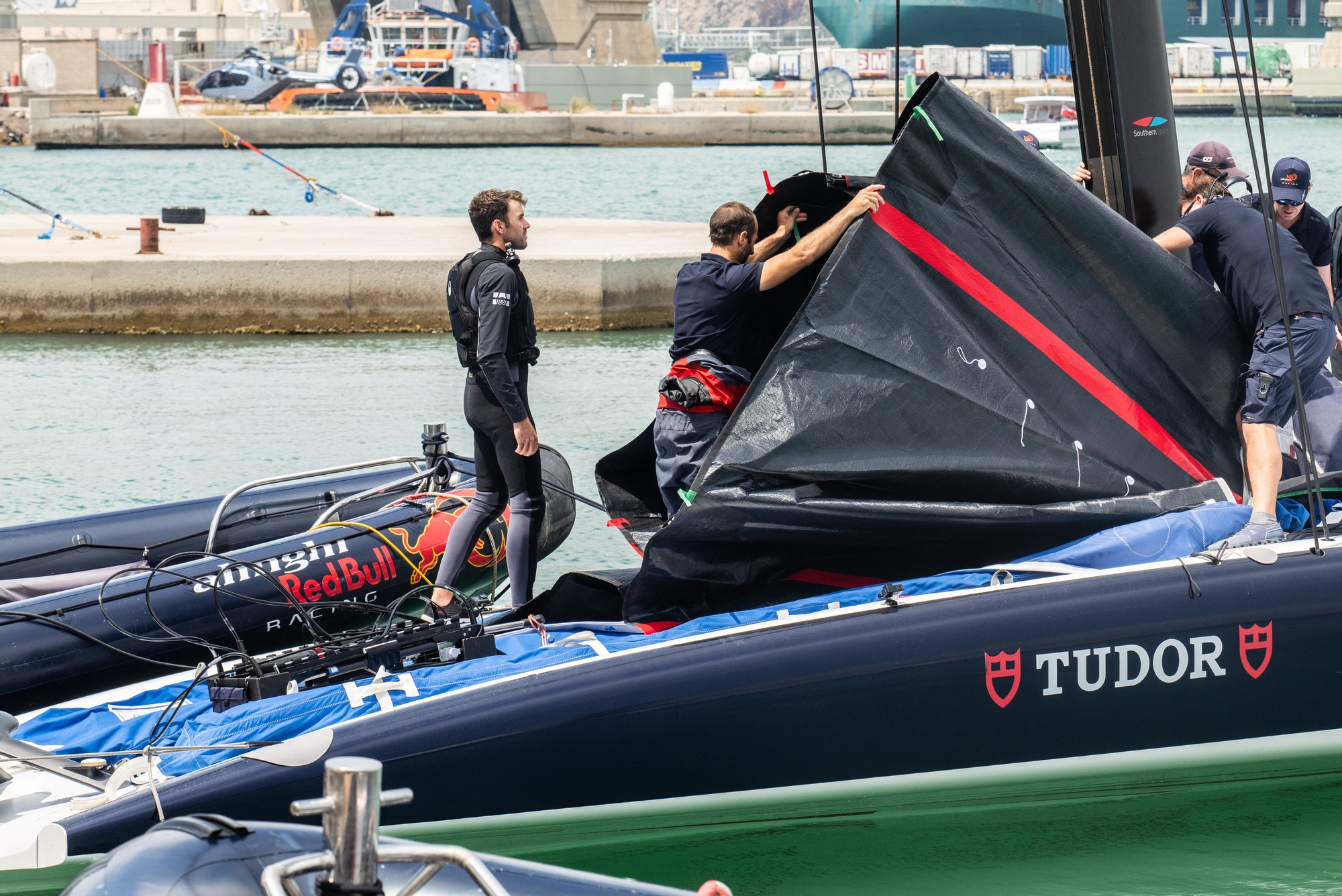 With so much action offsite, and very little wind out on the America’s Cup racetrack, the team managed one brief commissioning session with their AC40 in one-design mode, AC40-7, on Saturday. Unfortunately, with wind speeds barely registering on the anemometer above 5 knots, the team simply couldn’t get the AC40 into sustained flight, and similar to the session with Max Verstappen and the AC75 earlier in the week, the team had to call it a day.
