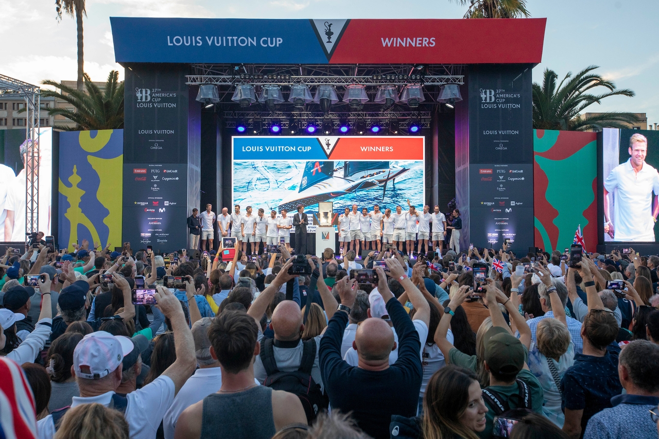 Among the local crowd witnessing the event from one of the many screens, I met Manel, a 34-year-old Catalan from Barcelona, whose Italian girlfriend is one of over 2,000 volunteers involved in the Louis Vuitton 37th America’s Cup. “She’s a fashionista from Milan, passionate about Prada and Luna Rossa growing up, so for her, it was an obvious choice. I grew up by the sea but didn’t know much about the competition. I have loved to see my city transform; I am very proud of the opening ceremony and the whole organization of it. I am also especially proud as it marked the first time women were competing in the Puig Women’s America’s Cup. I haven’t missed a race, and I am rooting for Team New Zealand as they mentioned considering Barcelona for the next Cup.”