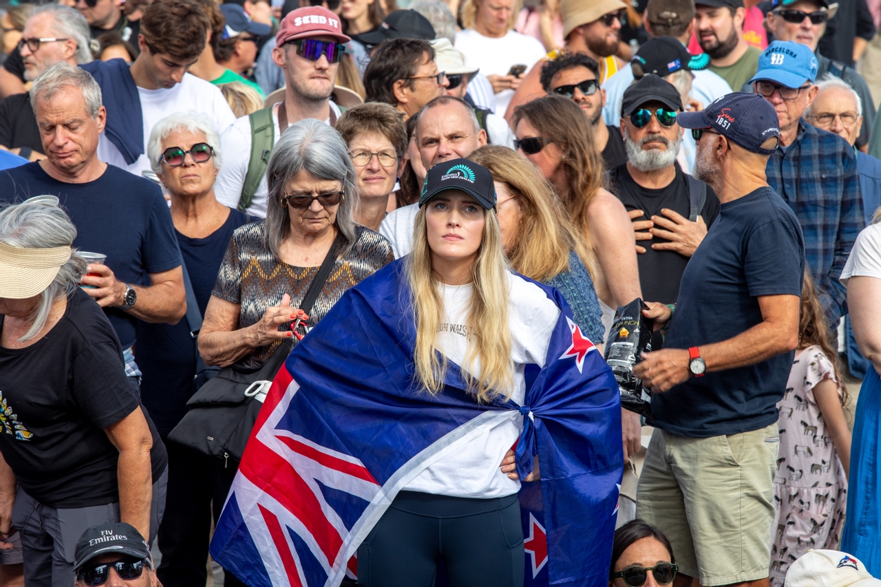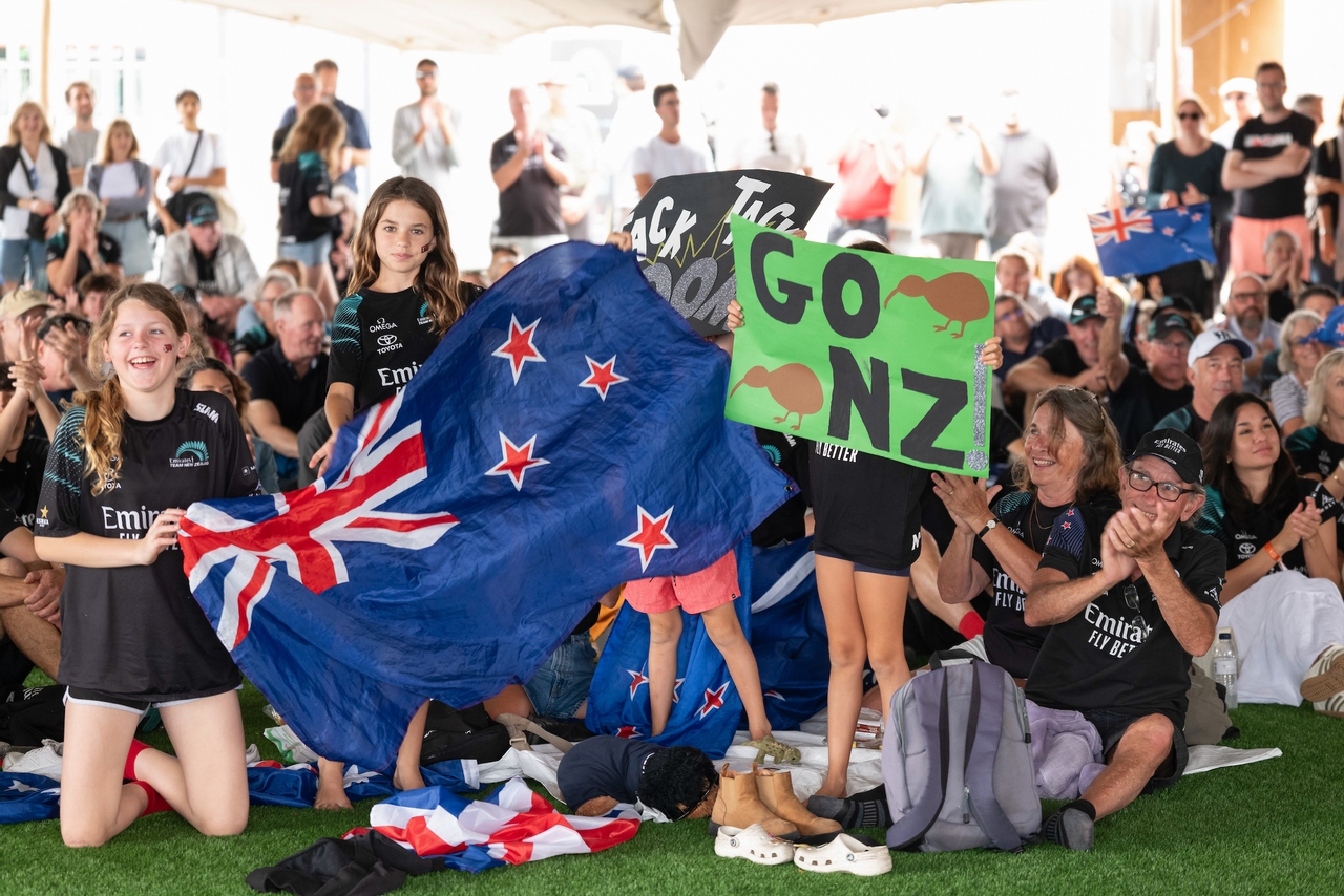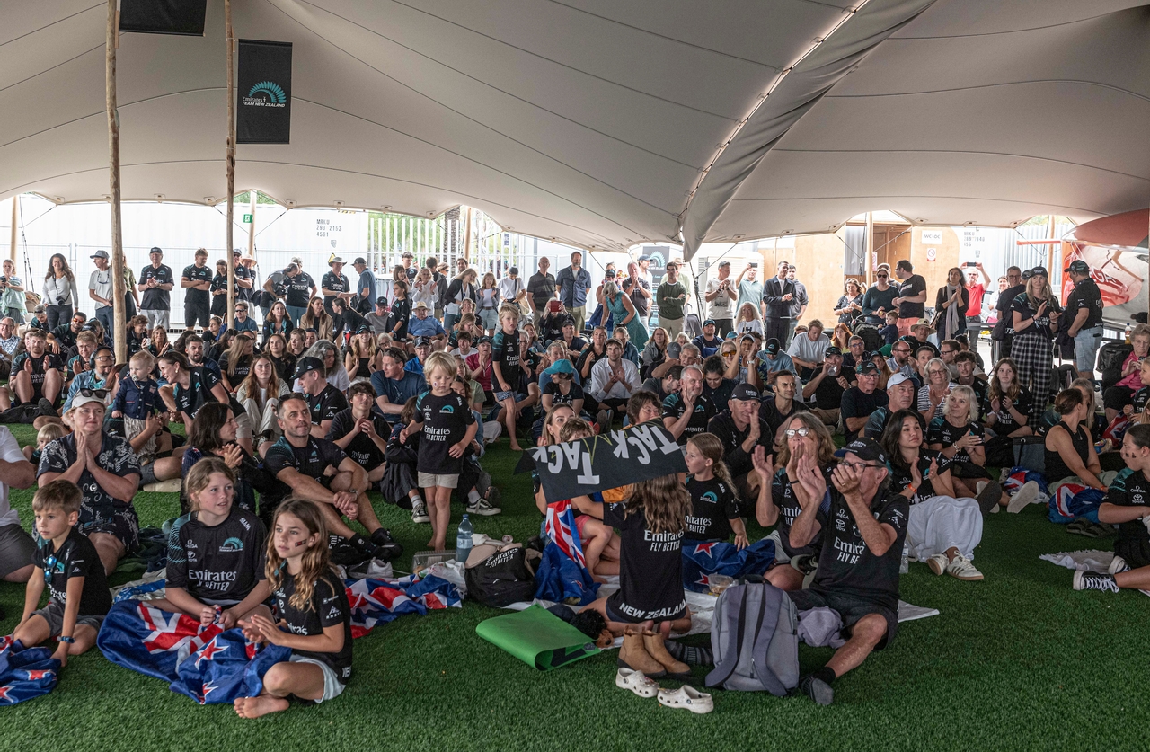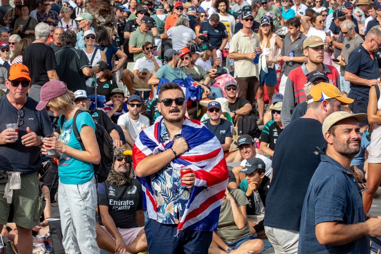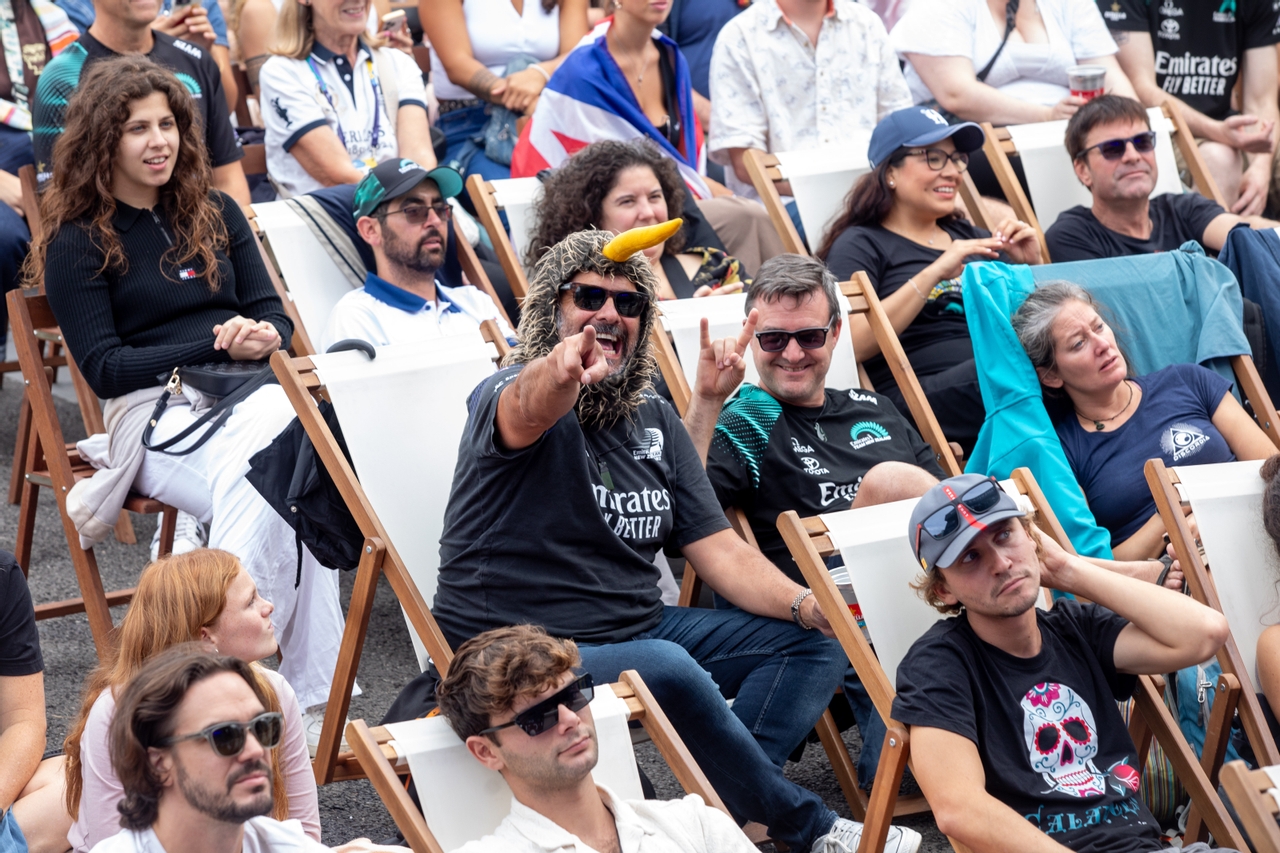 The vibrant atmosphere makes them feel right at home. The Plaça del Mar FanZone is overwhelmingly Kiwi, reflecting the strong presence of members from the Royal New Zealand Yacht Squadron (the largest in the country), which boasts 3,000 members, with a whopping 650 of them here for the competition.